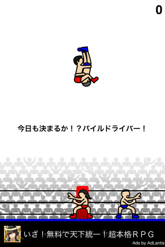 彼はパイルドライバー(略称:彼パイ)は、パイルドライバー一つでプロレス界を制しパイルドライバーが代名詞になったプロレスラーがひたすらパイルドライバーをするiPhone用の無料シンプルアクションゲームです。端末操作は傾けるだけというシンプルさですが、凝った音楽やタイトルコールが笑いを誘い、思わずはまってしまいます。プロレス好きはもちろん「パイルドライバーって何?」という人でも簡単に楽しめますので一度プレイしてみてはいかがでしょうか。